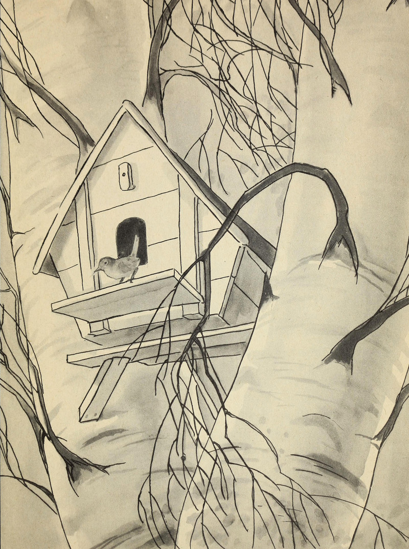 #vintage illustration #bird #1940s #illustration #birdhouse