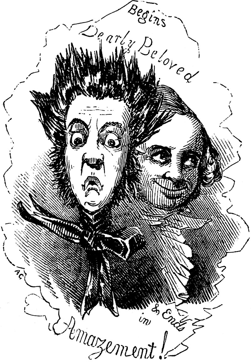 "Begins dearly beloved & ends in amazement!" From The Sisters, or the Fatal Marriages by Henry Cockton, 1851.