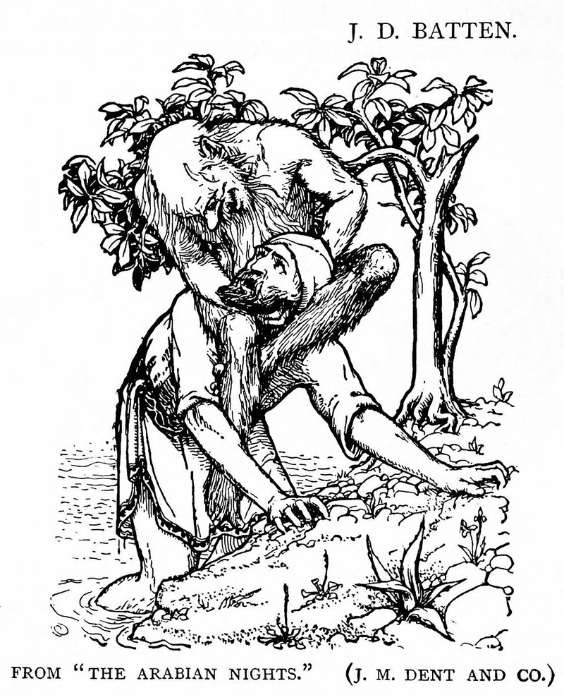 #vintage illustration #arabian nights #1900s #illustration #hairy man
