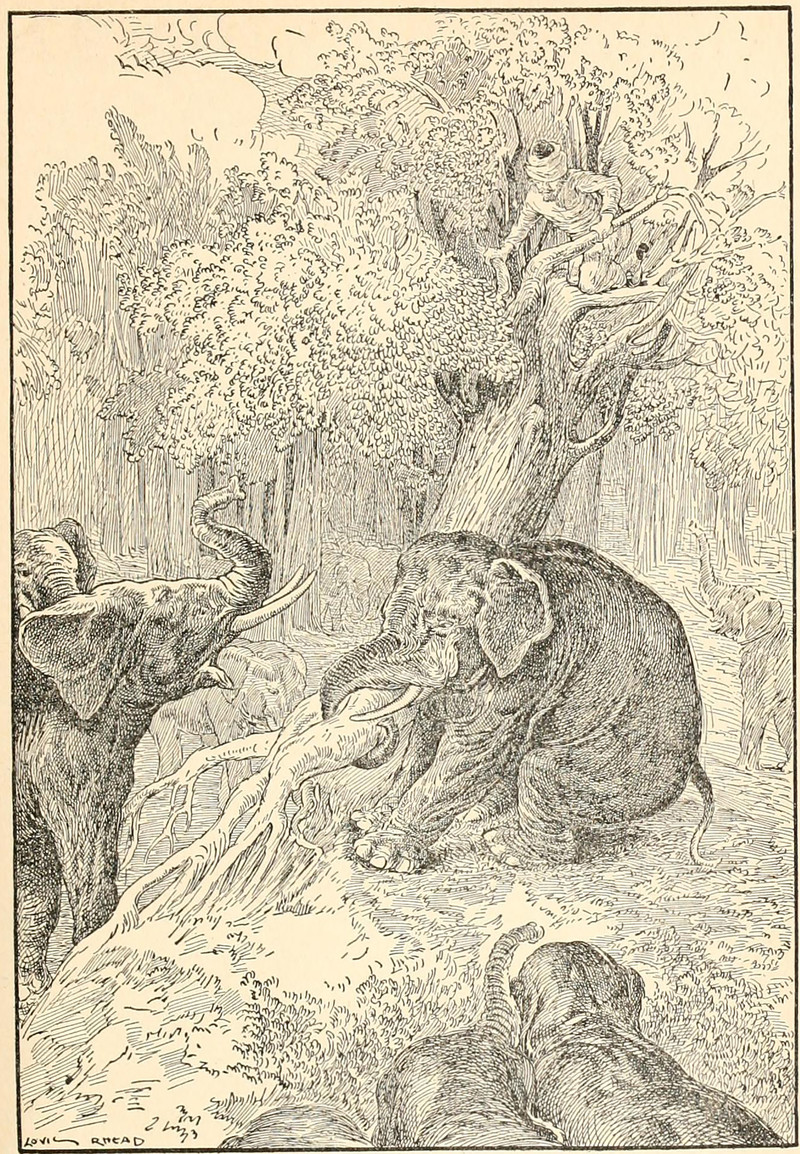 #vintage illustration #elephant #arabian nights #illustration #up a tree #1910s
