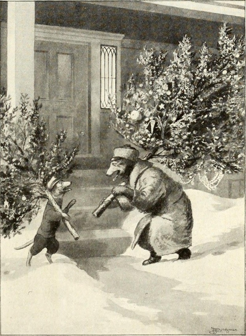 Before the advent of PETA, Christmas trees were traditionally fetched by dogs and bears.  From St. Nicholas magazine, 1915.  This will also be of interest: The Collected Lost Meanings of Christmas.
