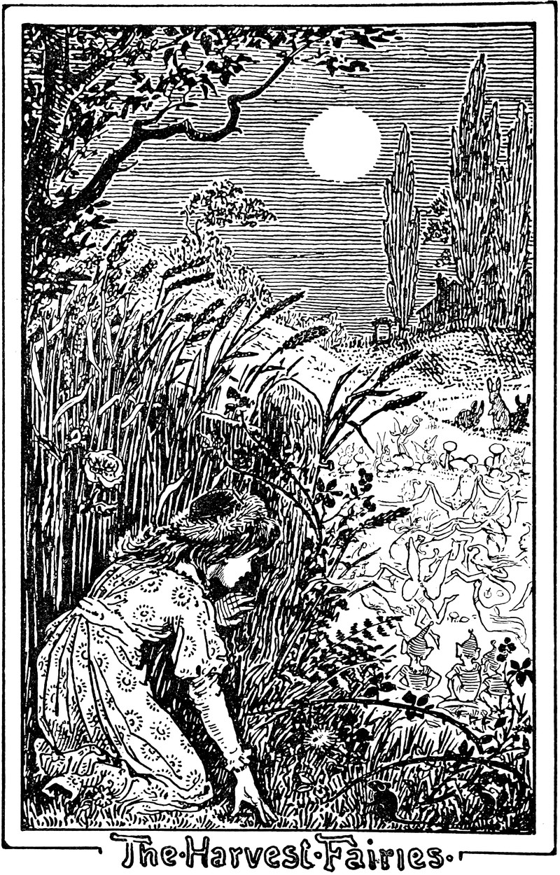 The harvest fairies from New Pictures in Old Frames by Gertrude M. Bradley, 1894. This should also be of interest: How to Believe in Your Elf.