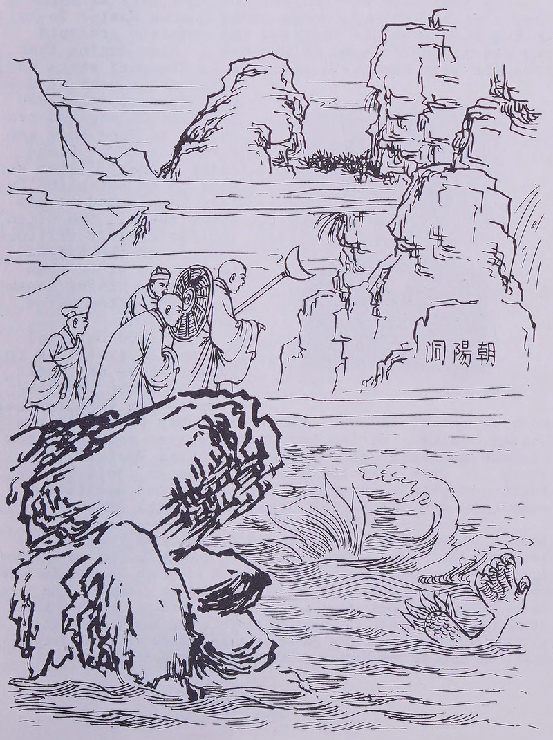 "Venerable master Hsü-Yün sees a golden dragon at Ch'ao-Yang Cave."  From Vajra Bodhi Sea, 1976.
