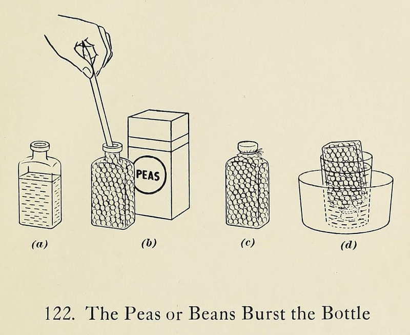 Bursting bottles with peans or beans is only as complicated as we choose to make it.  From Science Experiences with Home Equipment by Carleton John Lynde, 1938.