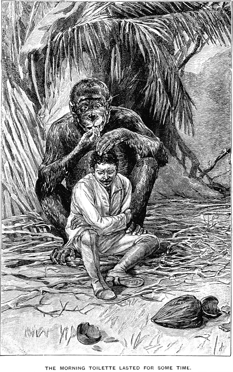 "The morning toilette lasted for some time."  From A Plunge into the Sahara by G. Demage and illustrated by P. Crampel, 1894.