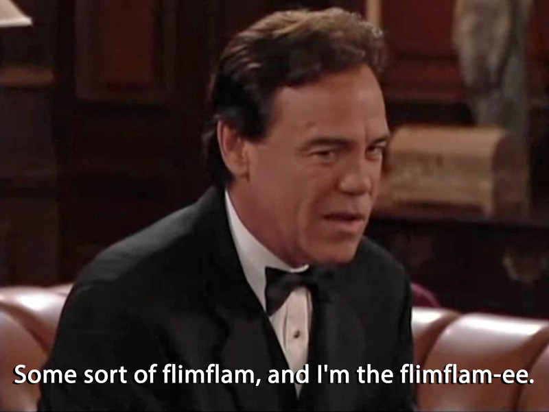"Some sort of flimflam, and I'm the flimflam-ee."  From Passions, episode 591.