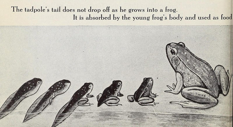 #vintage illustration #frog #1940s #illustration #tadpole