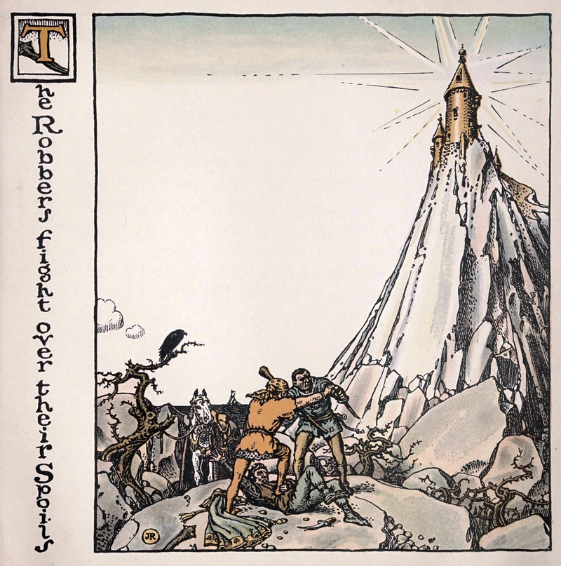 #vintage illustration #castle #1900s #illustration #grimm's fairy tales #men fighting