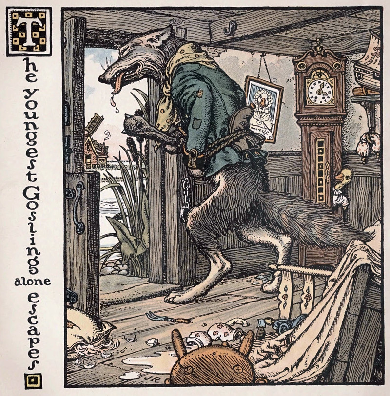 #vintage illustration #anthropomorphism #wolf #1900s #illustration #grimm's fairy tales