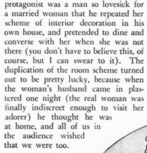 [The play] starts off with an improbable situation, which is much worse than an impossible one.