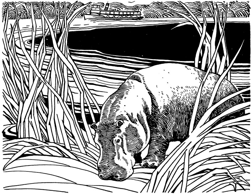 #vintage illustration #hippo #1940s #illustration