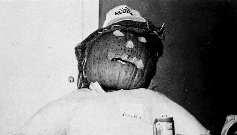 #jack-o'-lantern #vintage photo #vintage yearbook #yearbook #hallowe'en #pumpkin head #1990s #photo