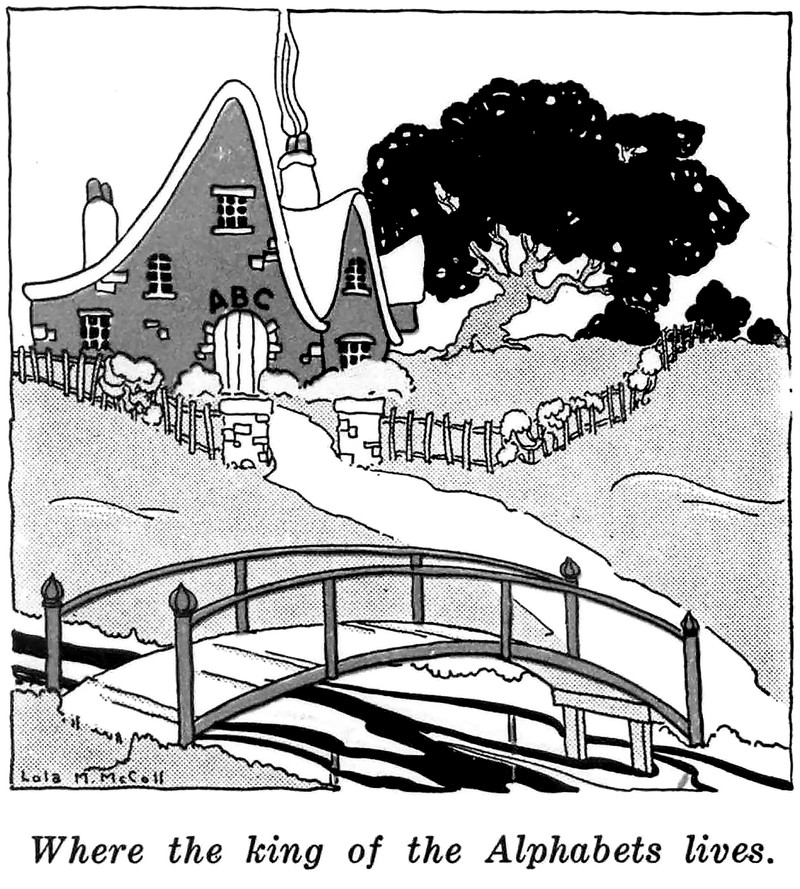 Where the king of the alphabets lives.  From Wee Wisdom, 1931.