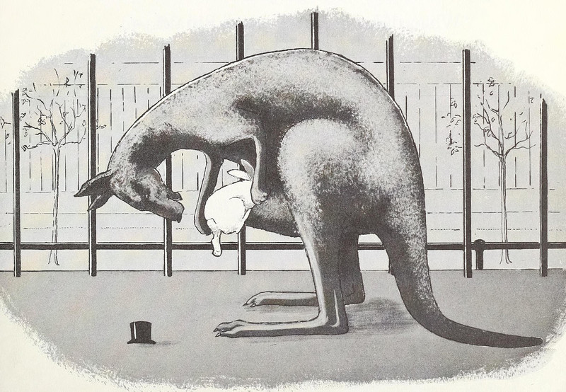 #vintage illustration #kangaroo #caged animal #zoo #bunny #1960s #illustration #animal friends