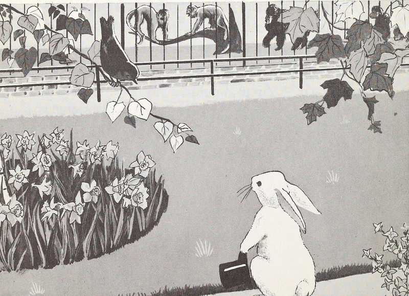 #vintage illustration #rabbit #bird #zoo #1960s #illustration #animal friends