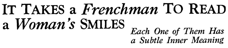 "It takes a Frenchman t oread a woman's smiles.  Each one of them has a subtle inner meaning."  From The Australian Women's Weekly, 1935.