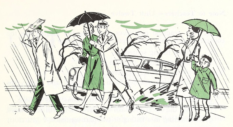 #vintage illustration #rainy day #umbrella #illustration #1950s