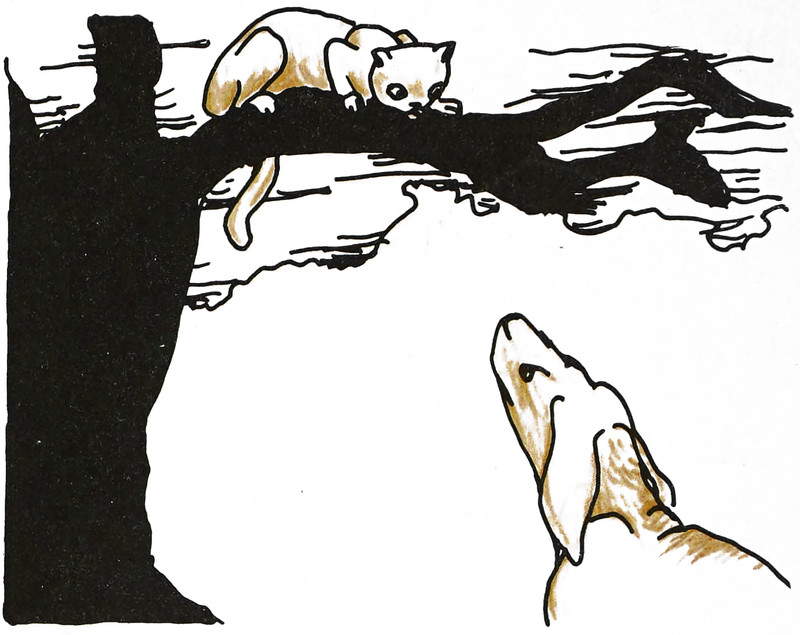 #vintage illustration #cat #dog #1970s #illustration #up a tree #cat and dog