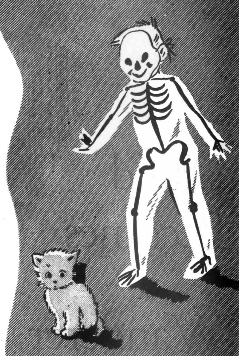 #vintage illustration #skeleton #cat #hallowe'en #1940s #illustration #kitten