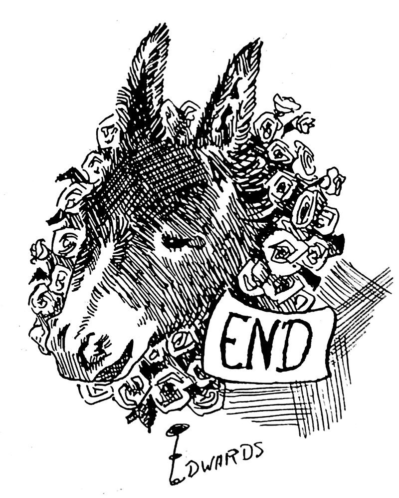 #vintage illustration #vintage yearbook #yearbook #the end #1920s #donkey #illustration