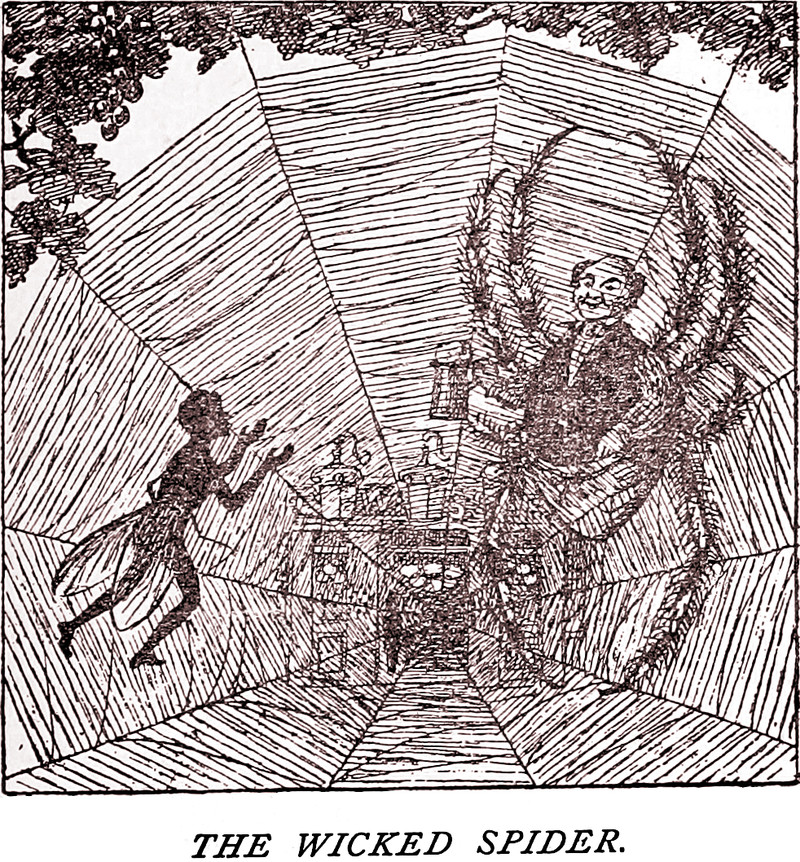 Here's a bartender as a wicked spider, from The World's Temperance Reciter by Joseph Malins, 1890.