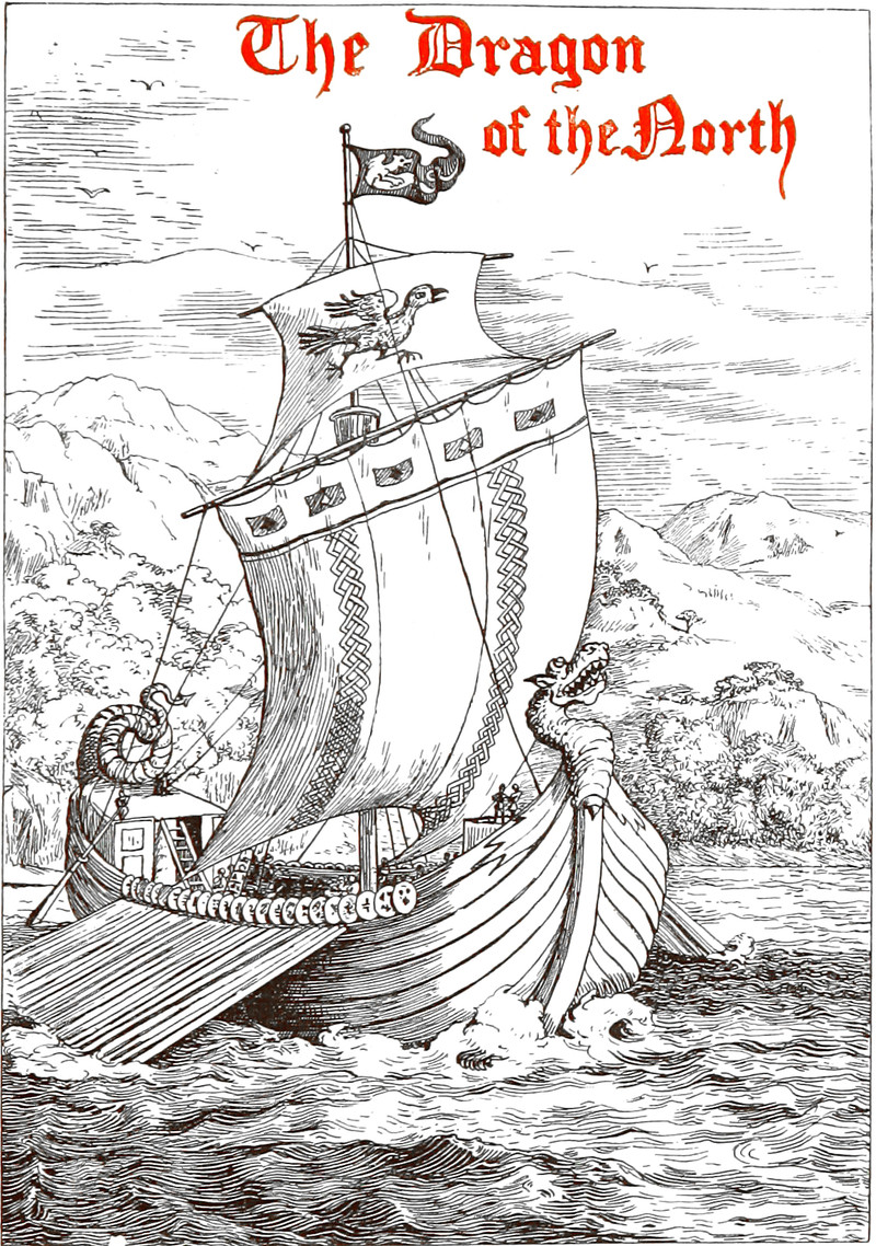 #vintage illustration #tall ship #dragon ship #dragon boat #masthead #illustration