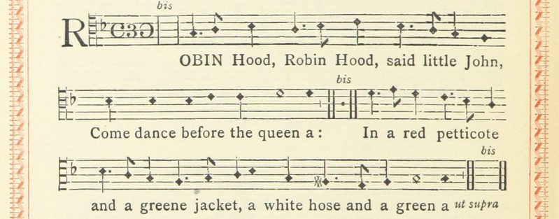 #drop cap #robin hood #musical notation #english ballads #musical score #1880s