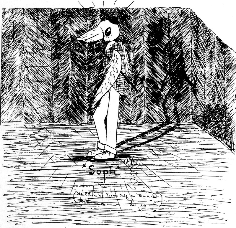 The text reads, "Soph[omore]. He thinks himself a bird. But --- he is." From The Chsite yearbook of Carey High School, 1920. See How to Hoodoo Hack a Yearbook.
