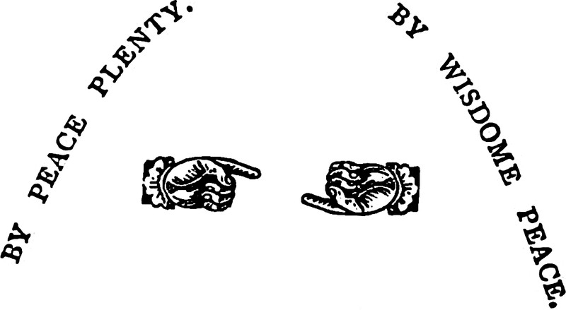"By peace plenty. By wisdome peace." From The Complete Works of Edmund Spenser, 1882.