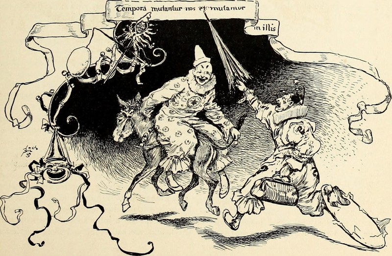 #vintage illustration #clown #clowns #donkey #illustration #tempora mutantur #riding backwards