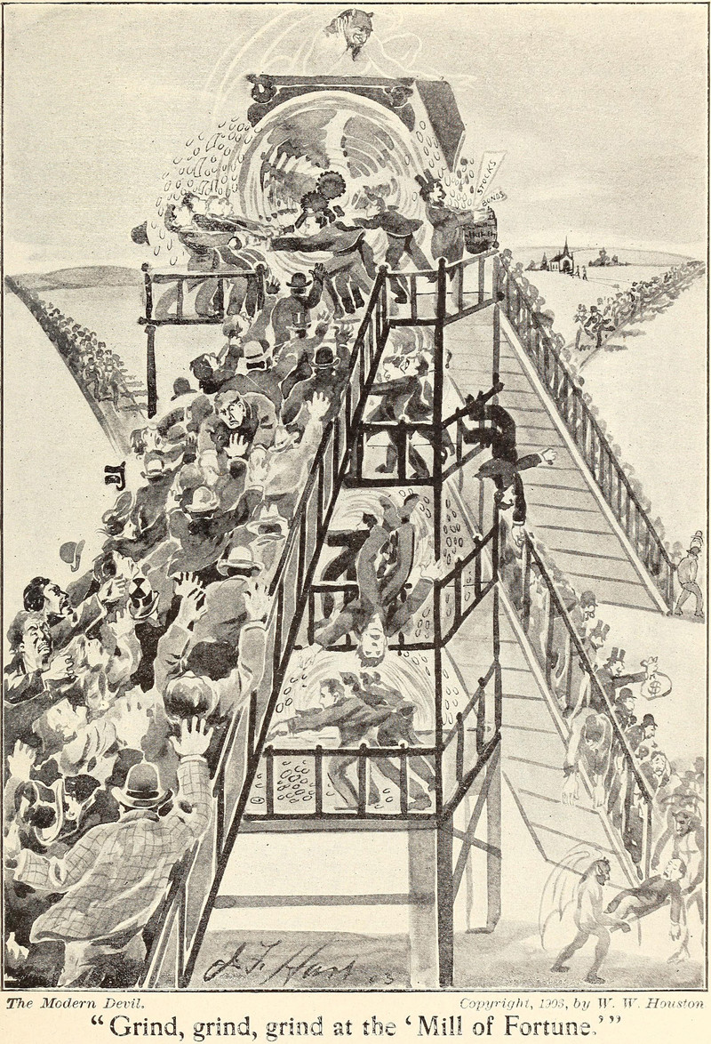 "Grind, grind, grind at the 'Mill of Fortune,'" from The Modern Devil by Isaiah Mench Chambers, 1903.