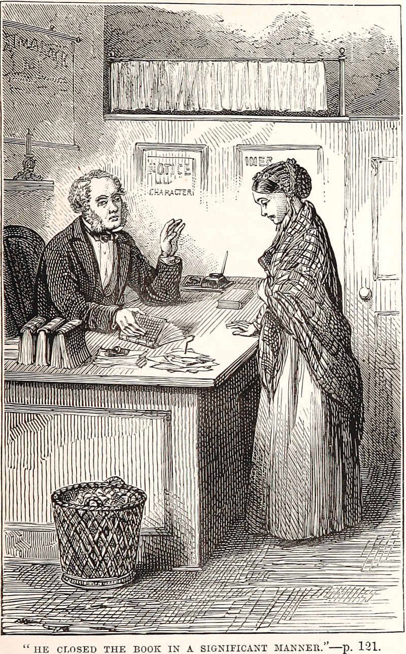 "He closed the book in a significant manner," from The Orphan and the Foundling by Emma Leslie, 1872.