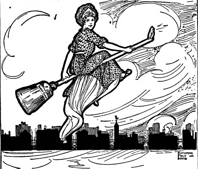 #vintage illustration #vintage ad #witch #magick #witchcraft #broomstick #occult #flying broom #sweeping #illustration #ad