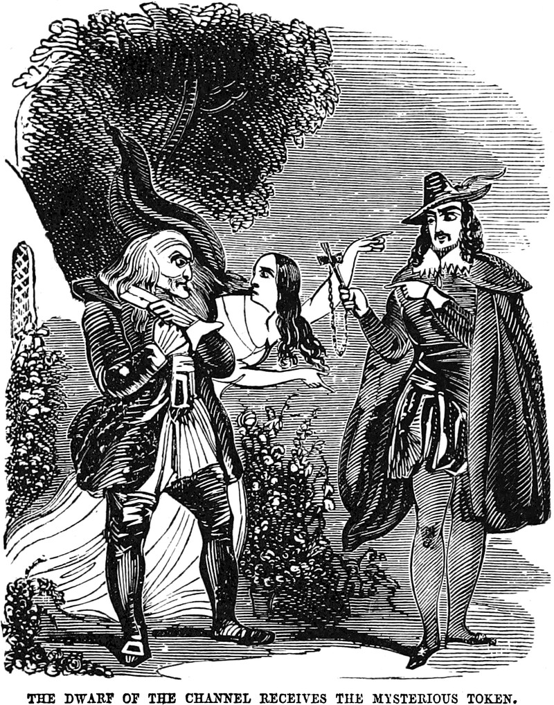 "The Dwarf of the Channel received the mysterious token," from The Commodore's Daughter by B. Barker, 1847.
