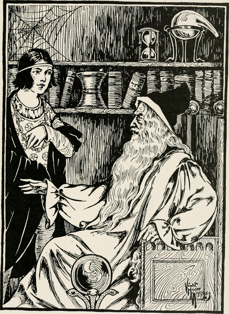 From The Woodcutter's Son and Other English Tales Retold, written and illustrated by Violet Moore Higgins, 1917.   Also very much of interest: The Young Wizard's Hexopedia.
