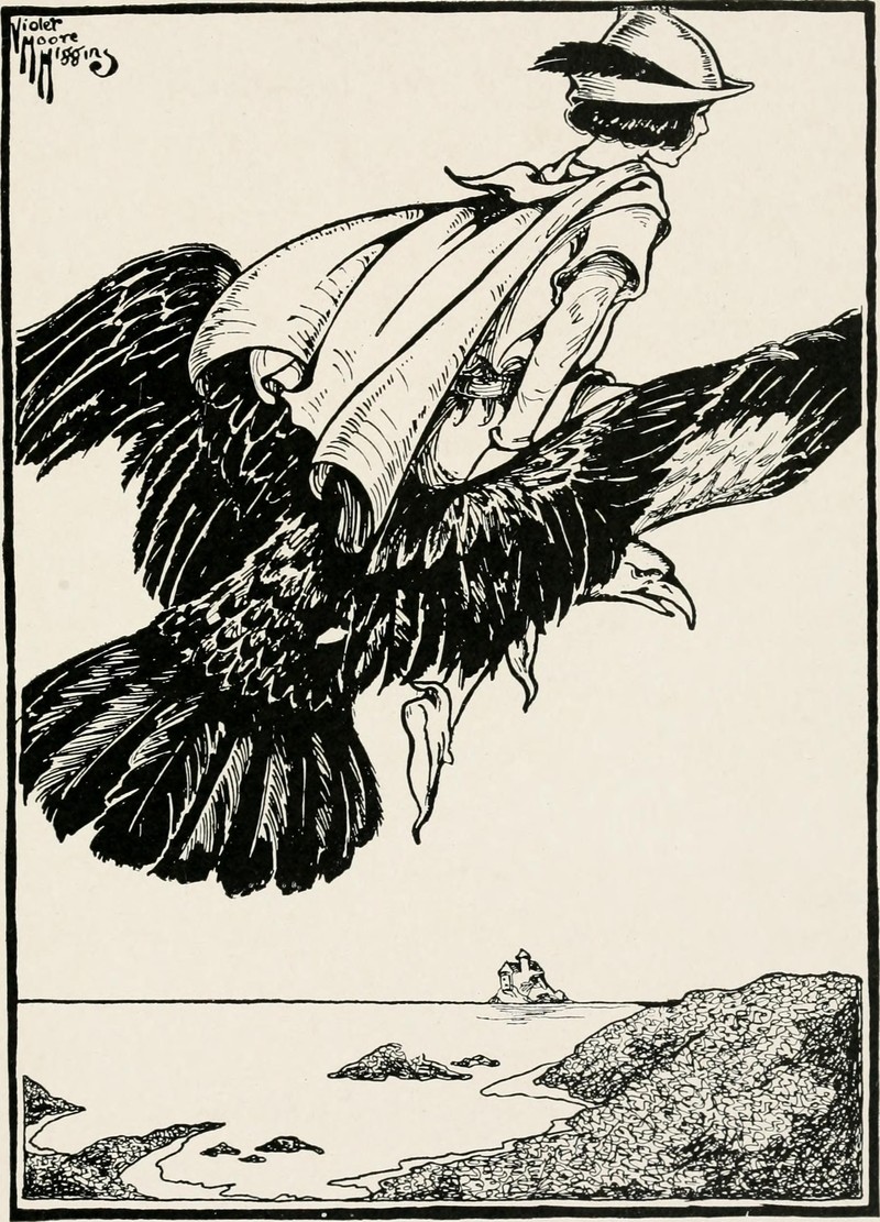 #vintage illustration #eagle #fairy tale #soaring #riding a bird #illustration #art #1910s