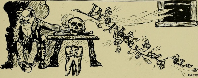 Here's a prophetic molar from the University of Maryland's Bones, Molars and Briefs yearbook, 1903.  See How to Hoodoo Hack a Yearbook.