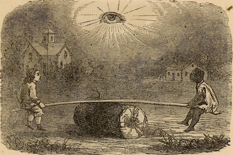 #vintage illustration #all-seeing eye #eye of god #eye in the sky #seesaw #teeter-totter #illustration #art