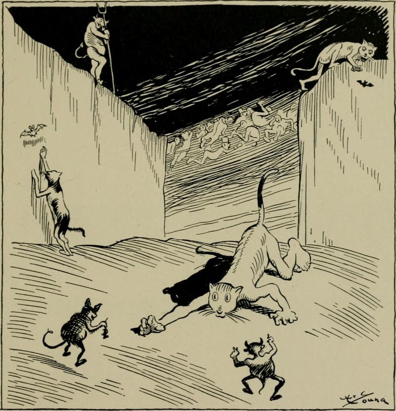 #vintage illustration #demon #imp #hell #cat and mouse #illustration #art