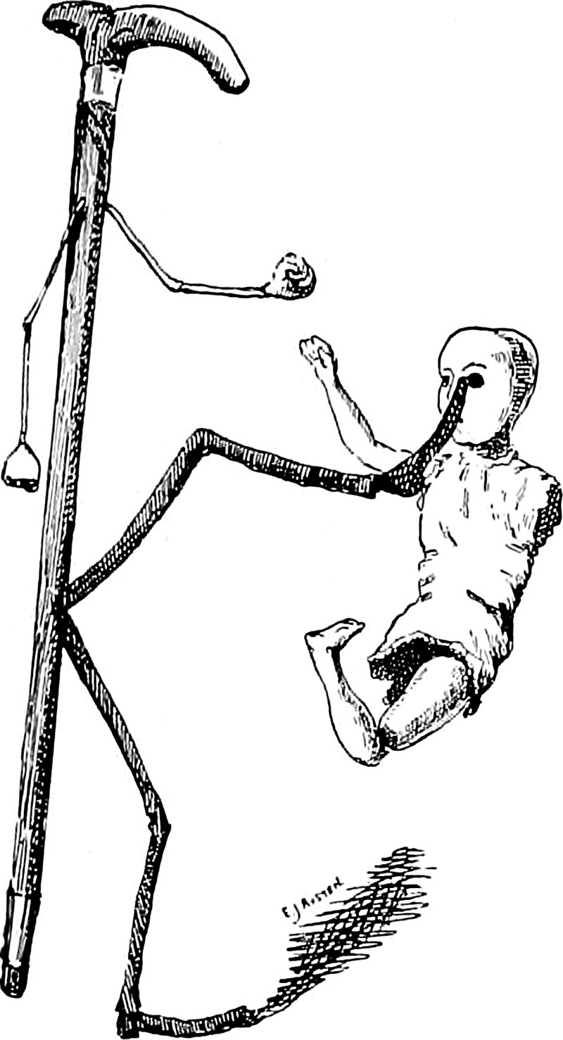 #vintage illustration #anthropomorphism #weird #walking stick #broken doll #illustration #art