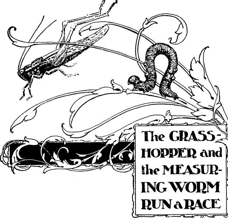 The tortoise and the hare get all the press, but unlikely races occur at every level of wildlife, including grasshoppers and inchworms. From Among the Meadow People by Clara Dillingham Pierson and illustrated by Frederick Charles Gordon, 1897.