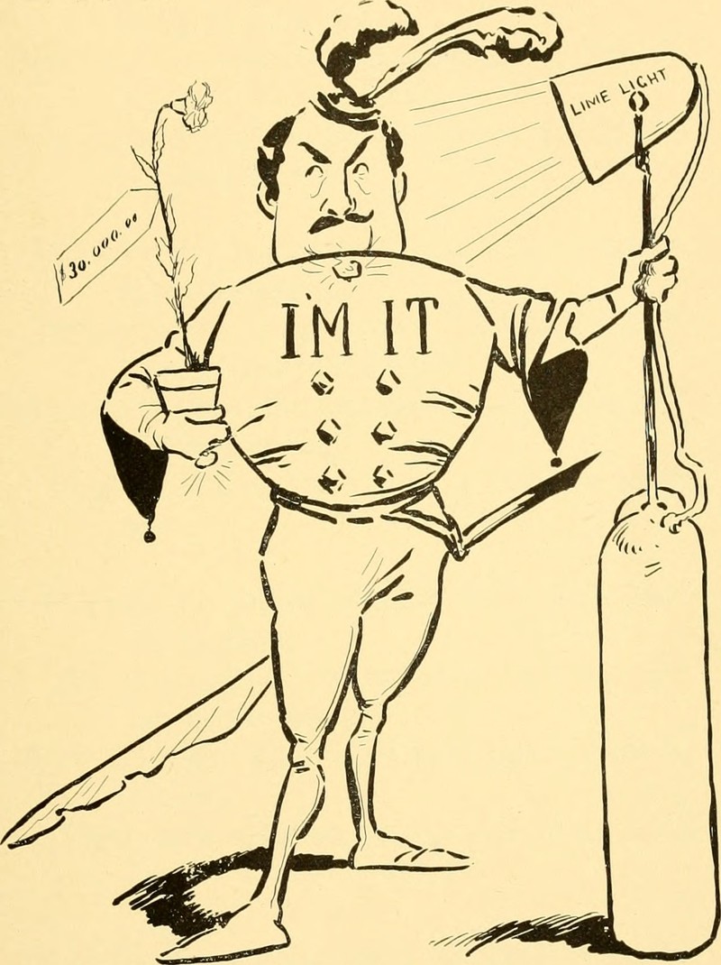 "I'm it," from At the Sign of the Dollar by Wallace Irwin, 1905. (We learn here exactly how portable lime lights are powered!)