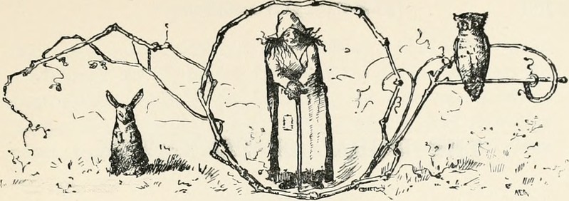 #vintage illustration #witch #owl #folklore #animal familiar #rabbit #illustration #art #1880s