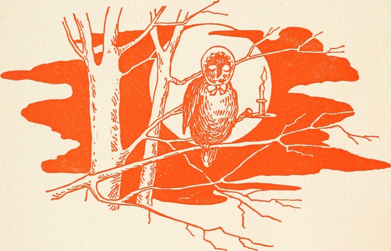 #vintage illustration #owl #full moon #candle #night owl #1900s #illustration #art
