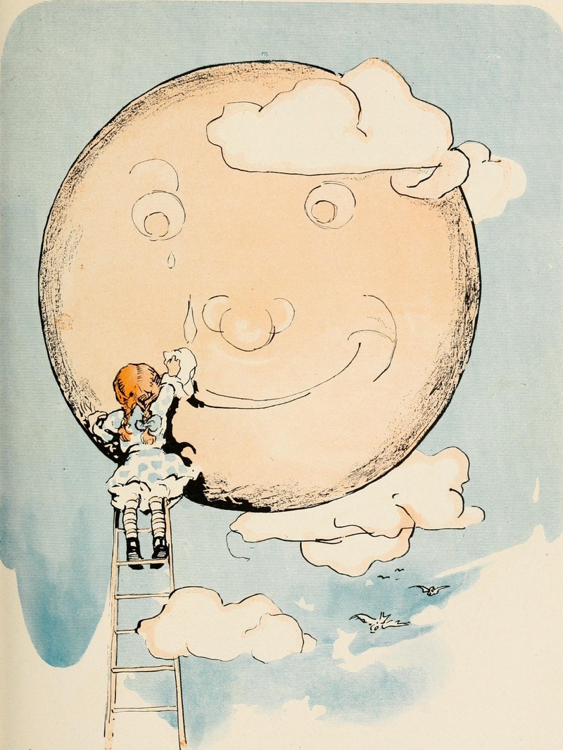 #vintage illustration #full moon #man in the moon #faces in things #ladder to the moon #illustration #art