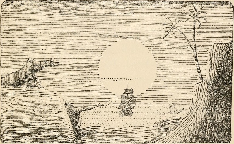 #vintage illustration #full moon #ship #illustration