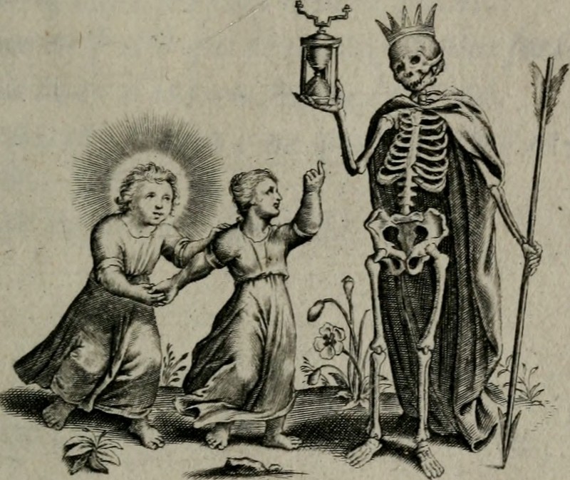 #vintage illustration #death #emblem #skeleton #hourglass #illustration