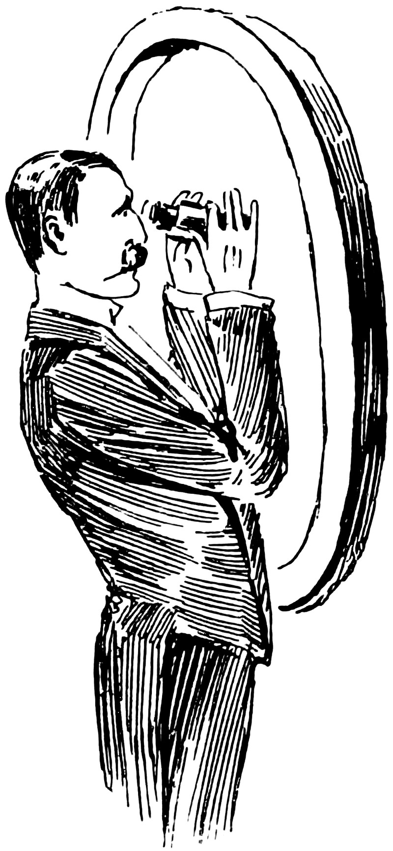 Here's a character looking through an ornate capital O that begins a chapter in The Man from Manchester by Dick Donovan, 1890.