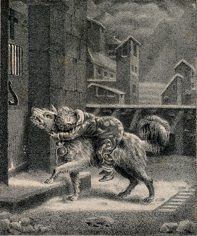 "The dog of the Convent of St. Bernard."  Lithograph by A. Hoffay after Wafflard.