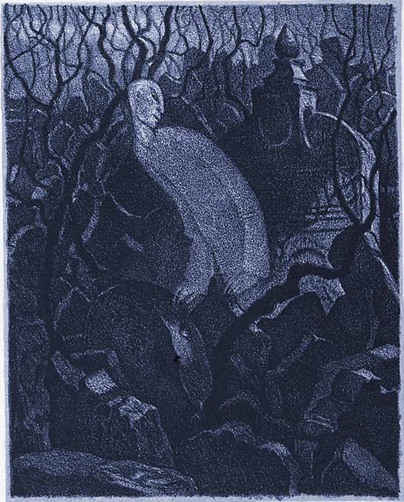 #vintage illustration #cemetery #graveyard #golem #gustav meyrink #illustration